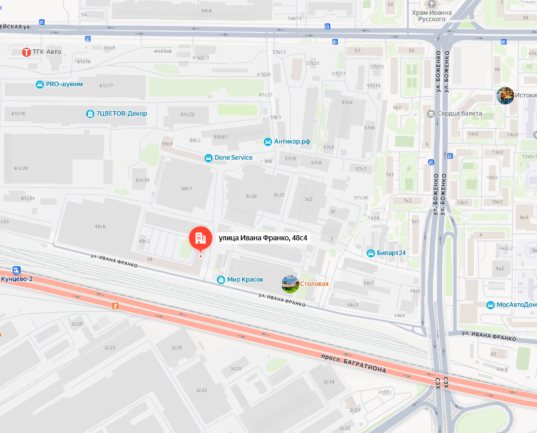 Адрес: г. Москва, ул. Ивана Франко 48, стр. 4